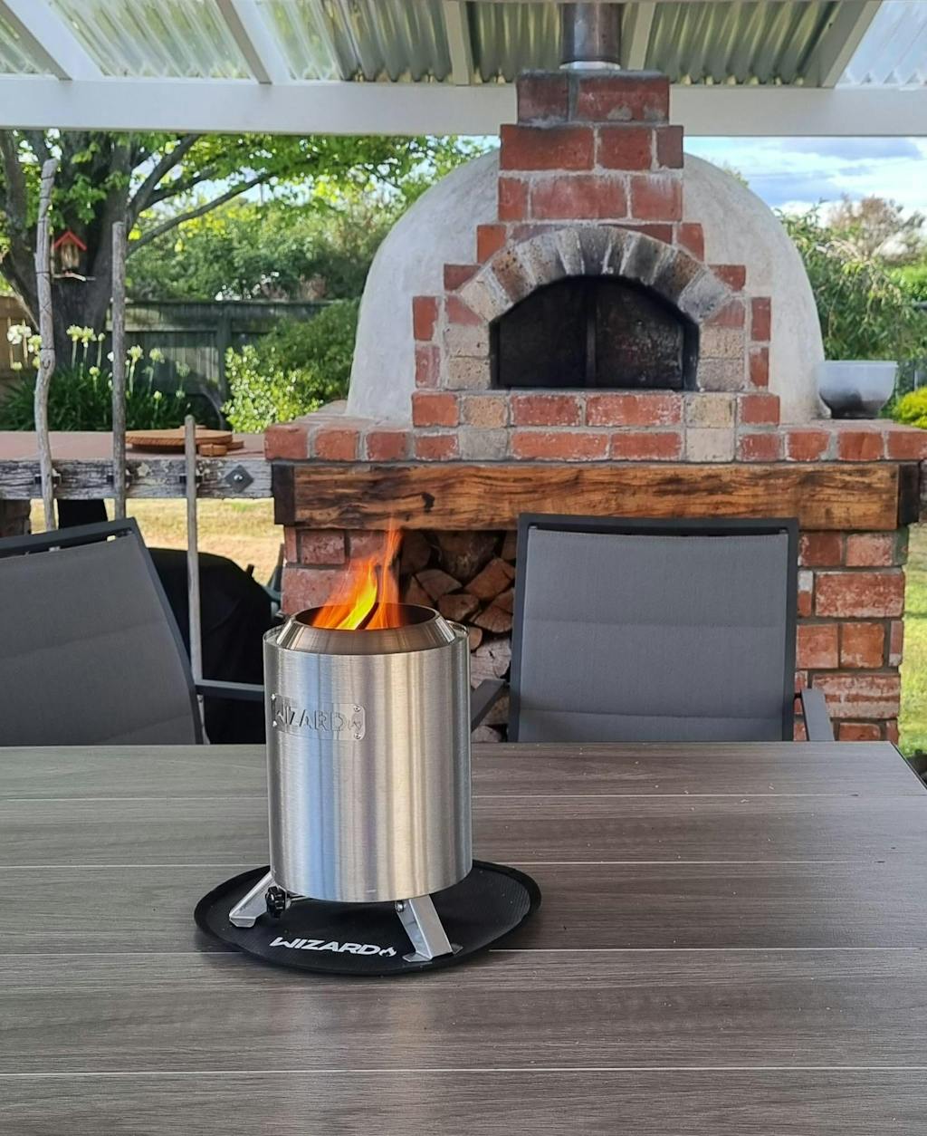 The special design of the Wizard Tabletop Fire Pit creates a unique airflow that allows the smoke to burn off inside the fire before it gets to you! No need to play musical chairs to dodge smoke. No more smelling like a smoked kahawai.