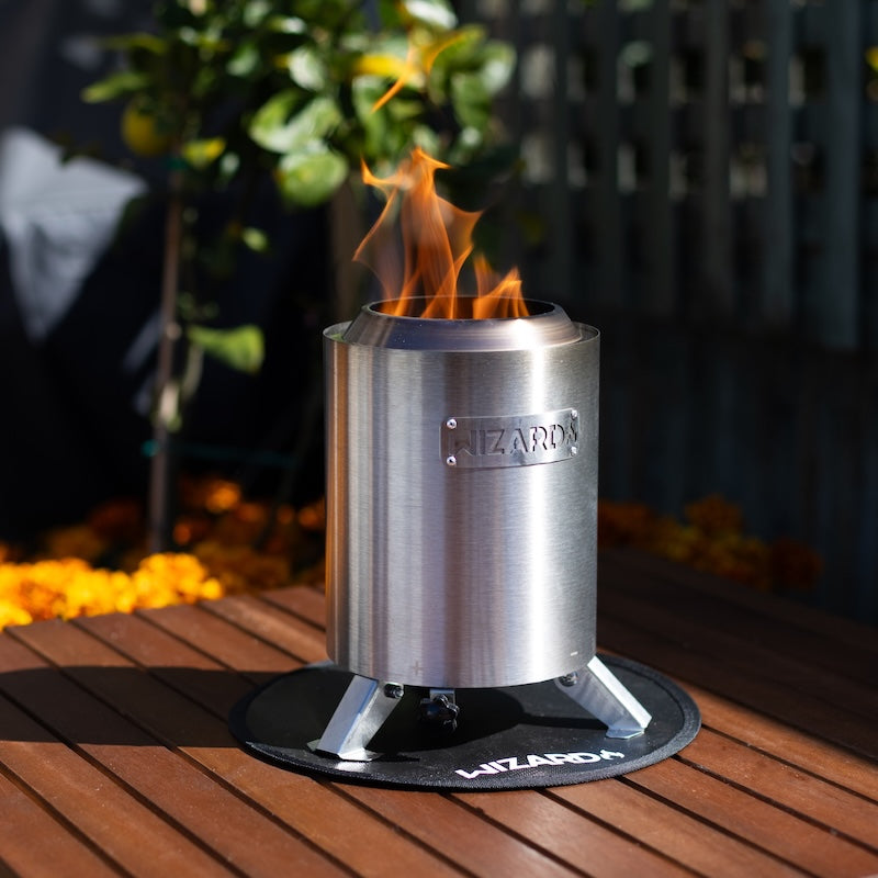 The highly requested Mini Wizard Fire Pit is perfect for roasting marshmallows on date night or taking on your next camping trip. Easily fuel with wood pellets or small kindling.