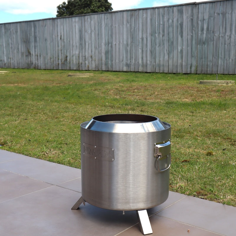Wizard Fire Pits are made with Stainless Steel (grade 304). This is a strong but surprisingly lightweight metal known for its excellent rust resistance.